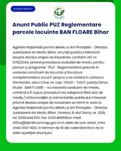 Anunt Public PUZ Reglementare parcele locuinte BAN FLOARE Bihor